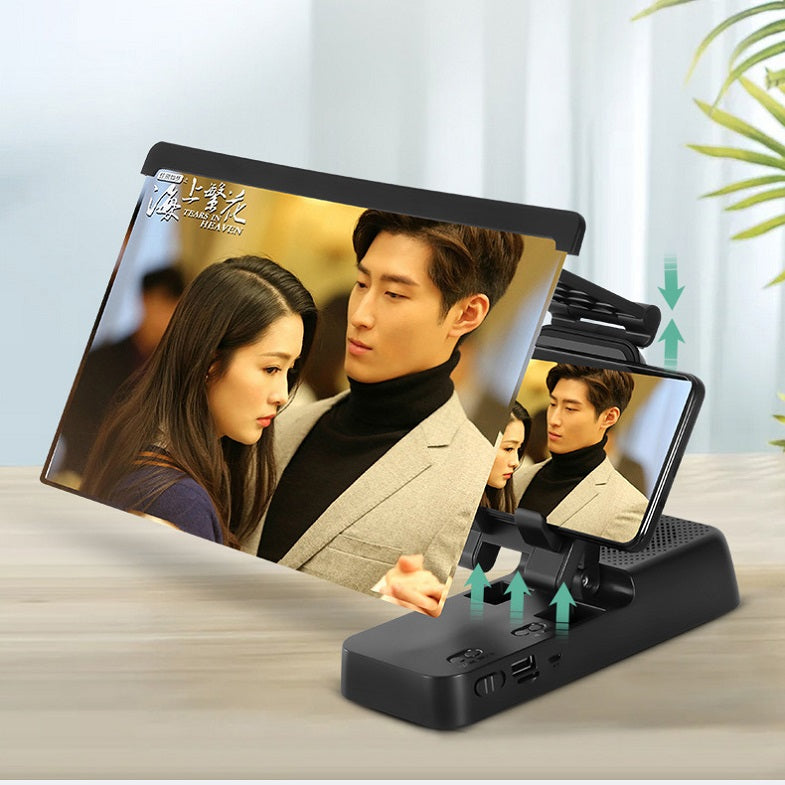 Alto-falante Bluetooth: El soporte para teléfono de escritorio tiene un alto brillo y una calidad de sonido nítida, que puede proporcionar una imagen más clara. Este amplificador de pantalla tiene un alto brillo bluetooth y un rendimiento estable.